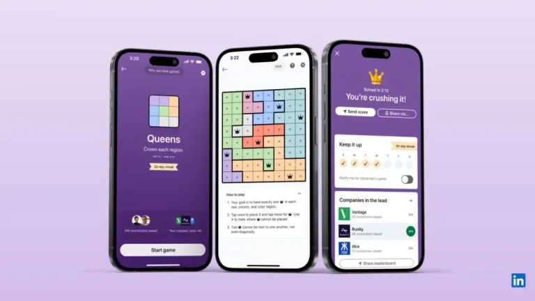 دخلت شبكة التواصل المهني لينكد إن عالم الألعاب الإلكترونية بإطلاقها ثلاثة ألعاب جديدة: Pinpoint و Queens و Crossclimb. ستتاح هذه الألعاب للمستخدمين مرة واحدة يوميًا عبر تطبيق لينكد إن للهواتف أو الحواسيب الشخصية. وبعد انتهاء الجلسة اليومية، سيحصل اللاعبون على إحصائيات مثل أعلى درجة حققوها وسلسلة انتصاراتهم اليومية، إضافةً إلى لوائح الترتيب وأسماء من لعبوا الألعاب ضمن شبكاتهم.